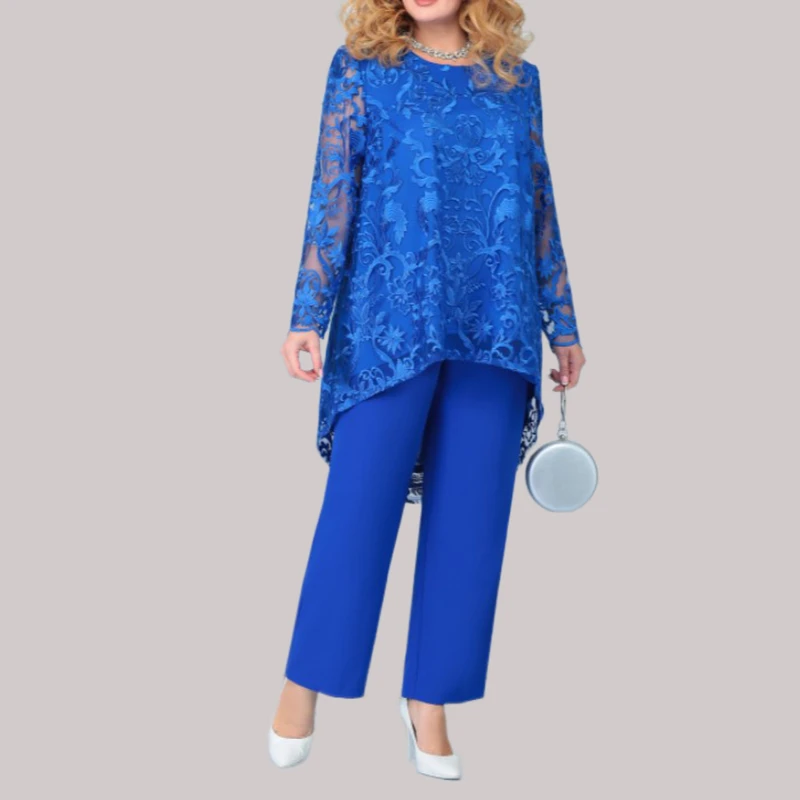 Plus Size Long Sleeve Lace Blouse Wide and bottom set